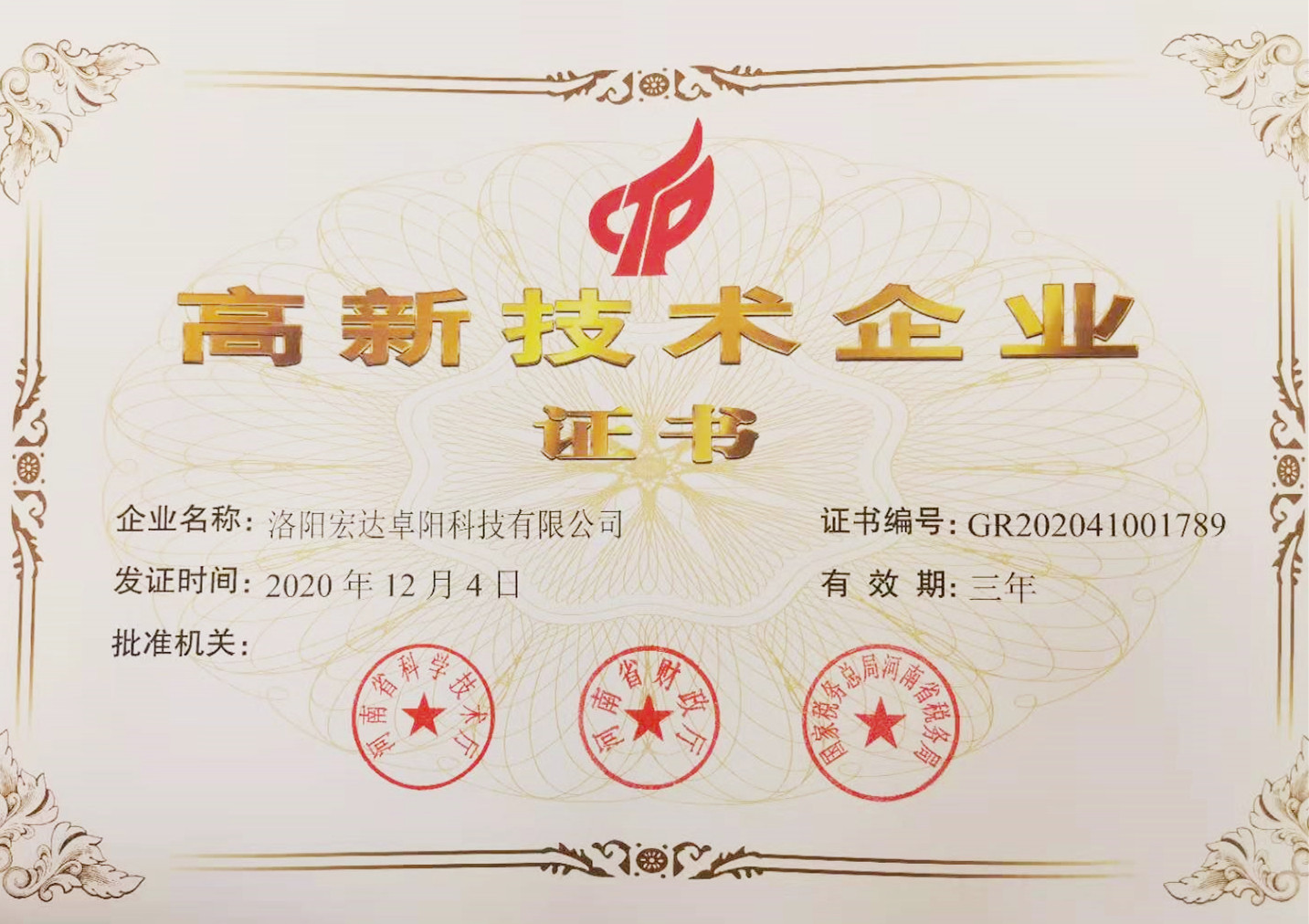 公司先后獲得洛陽市“模范職工小家”、國宏集團“五星企業”、孟津區安裝施工“明星企業”、安全生產先進單位、A級納稅企業等榮譽。公司被評為國家級科技型中小企業,擁有河南省工程技術中心、洛陽市企業研發中心,自主研發并取得16項專利。